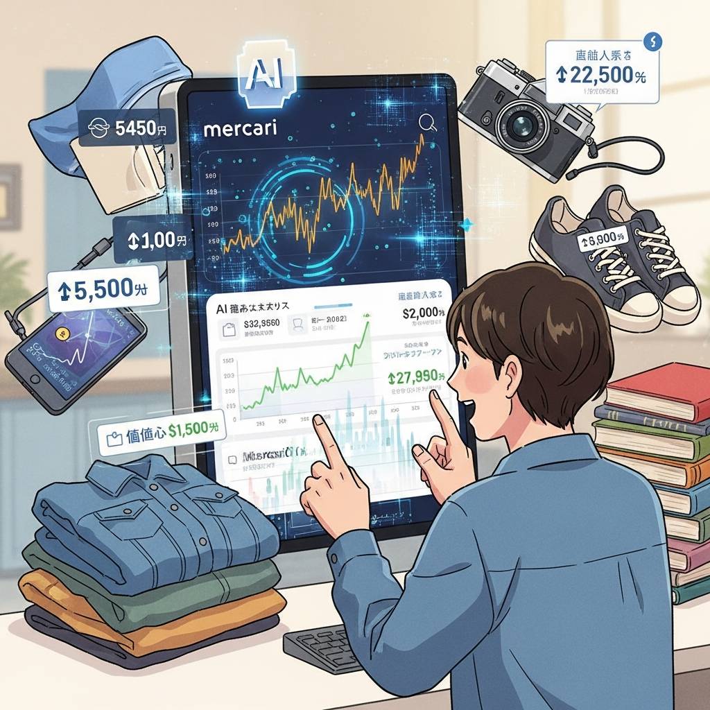 最も効果的な方法は、過去の販売データを分析するAIツールを活用すること。例えば、Mercari Priceは出品する商品の適正価格をAIが算出してくれるサービスです。同じ商品カテゴリの過去の取引価格から最適な出品価格を提案してくれるため、売れ残りや安売りのリスクを大幅に減らせます。